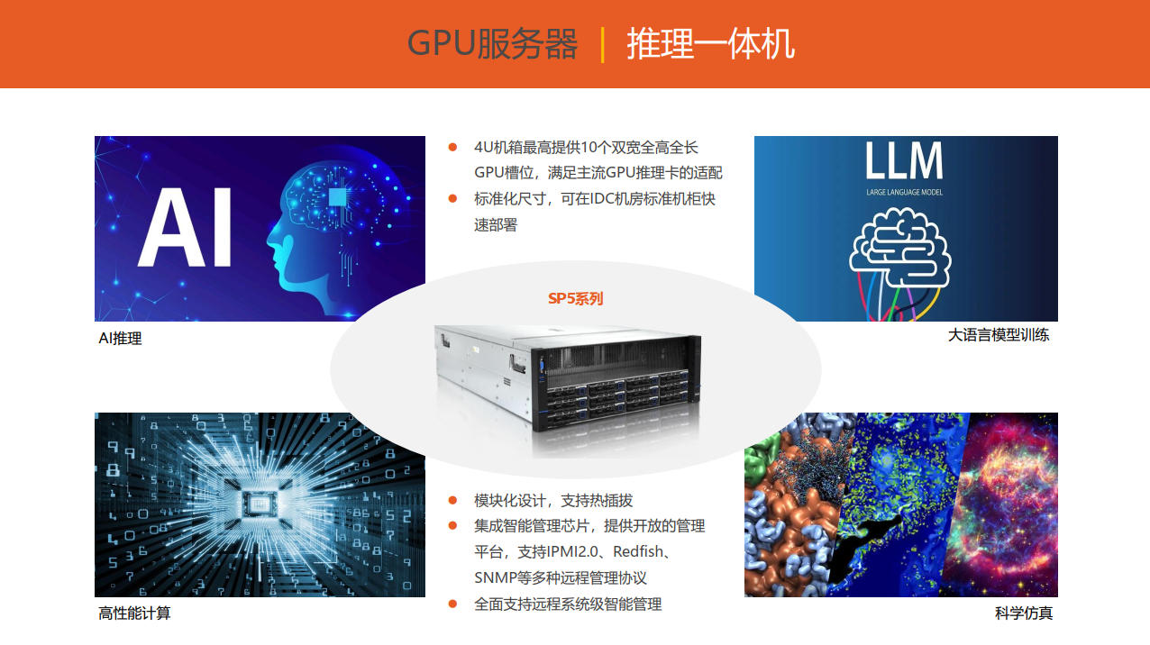 AMD平台的GPU服务器以第五代EPYC(霄龙)处理器与Instinct系列GPU为核心,构建高性能、高能效的异构计算架构,广泛应用于AI训练、深度学习、科学计算与数据中心场景,具备强大的浮点运算能力与开放的ROCm软件生态?,支持PyTorch、TensorFlow等主流框架,降低CUDA迁移门槛 。